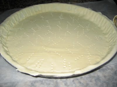 • Coloca-se a massa folhada numa forma (sem adicionar gordura) , pica-se com um garfo e vai ao forno cerca de 3 a 5 minutos.